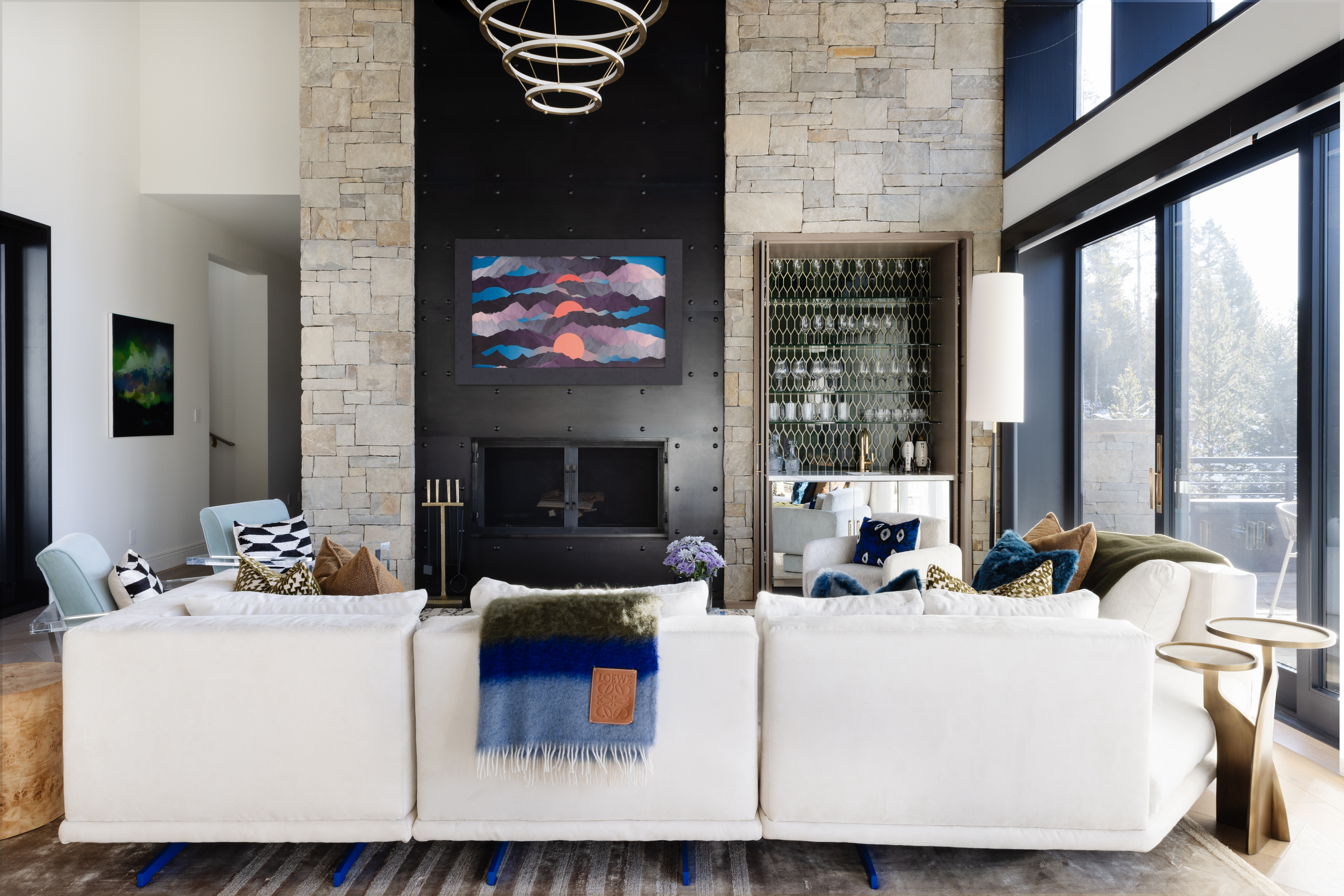 Playful hues and patterns converge with luxe finishes to create the ultimate mountain retreat for entertaining.