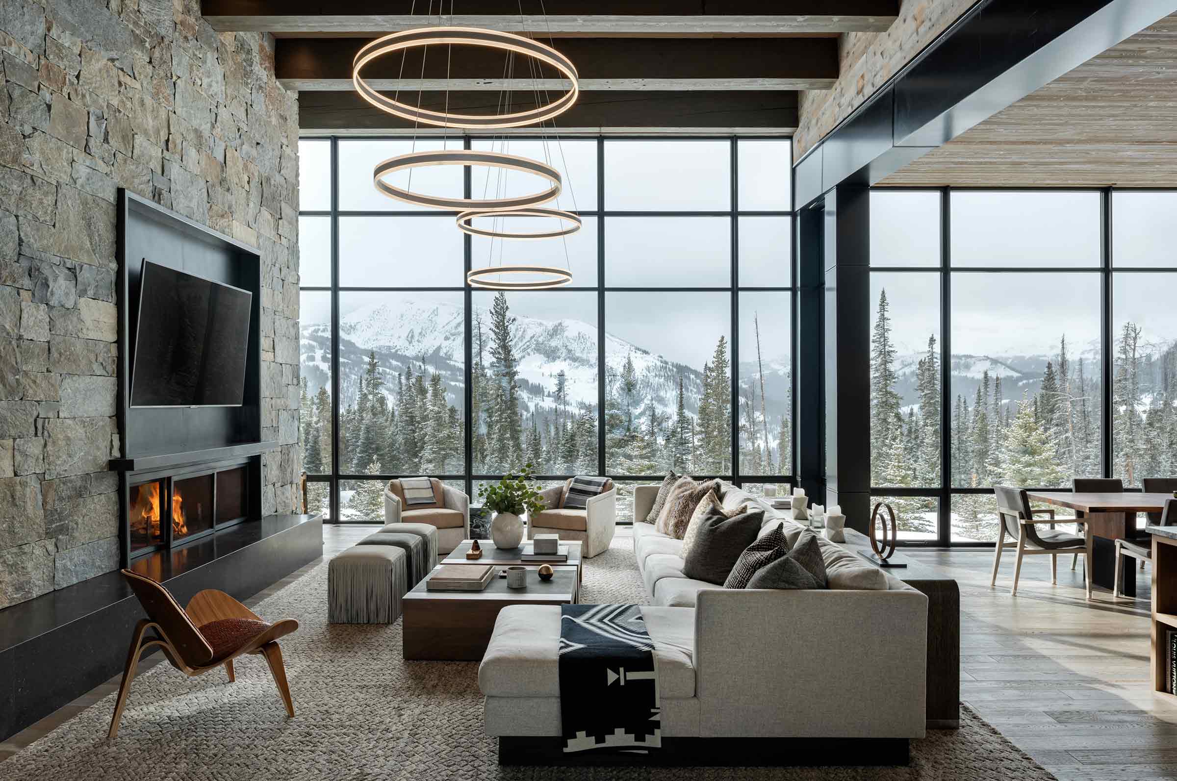 Embracing the elements was a big part of the design brief when tackling this sprawling mountain home nestled in an exclusive ski community. With breathtaking views taking center stage from almost every room, glass was one of the main materials employed to usher in those stunning vistas. Reclaimed wood, earthy stone and warm luxurious hides and fur textiles round out the material palette.