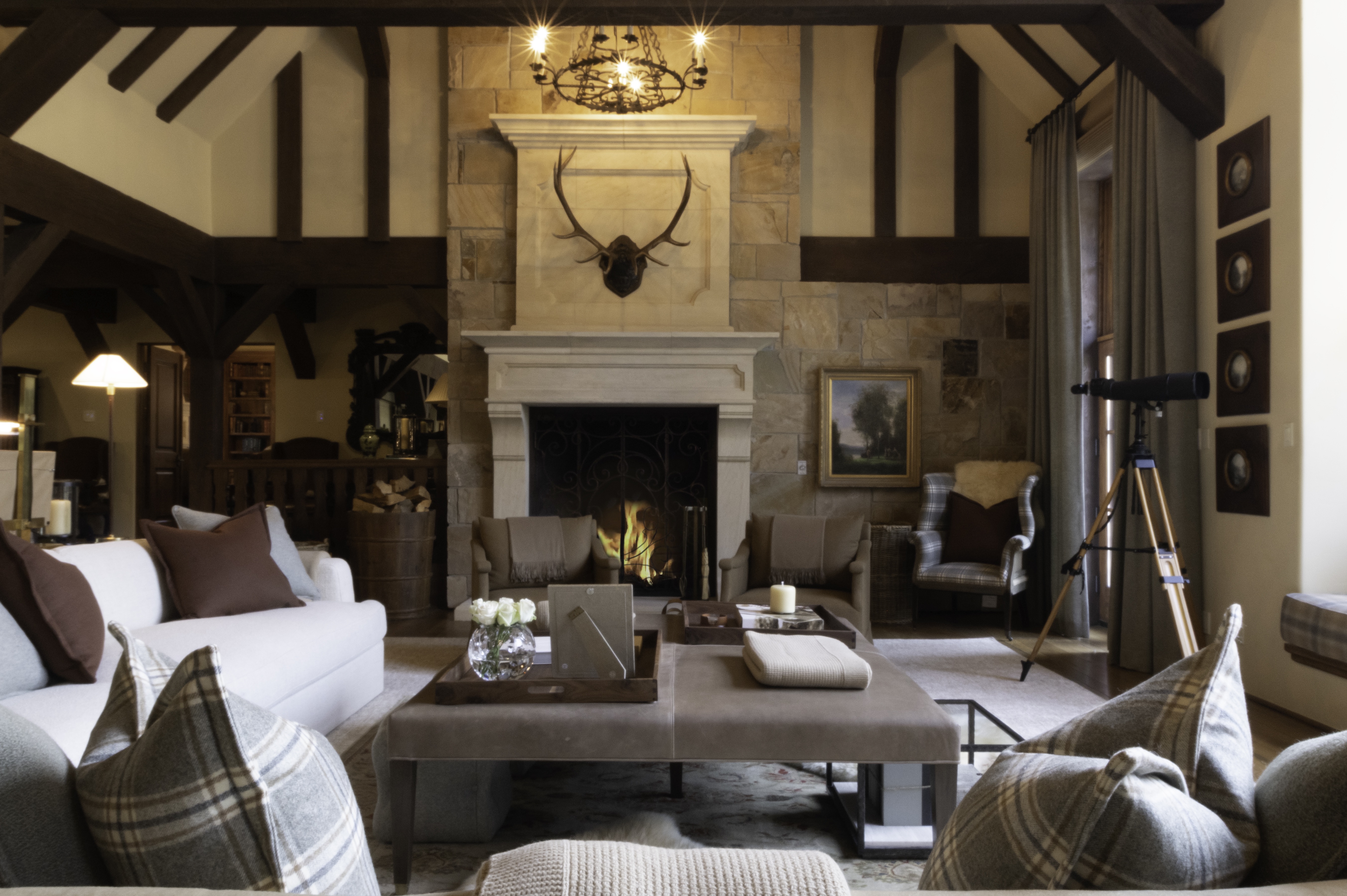 Layers of luxurious rugs, sumptuous plaids and textured boucles converge inside this quintessential ski home. Preserving the character-filled ceilings and original fireplaces to their full glory, the interiors amplify an elegant Ralph Lauren-inspired aesthetic that makes you want to curl up by a warm fire after a long day of hitting the slopes.