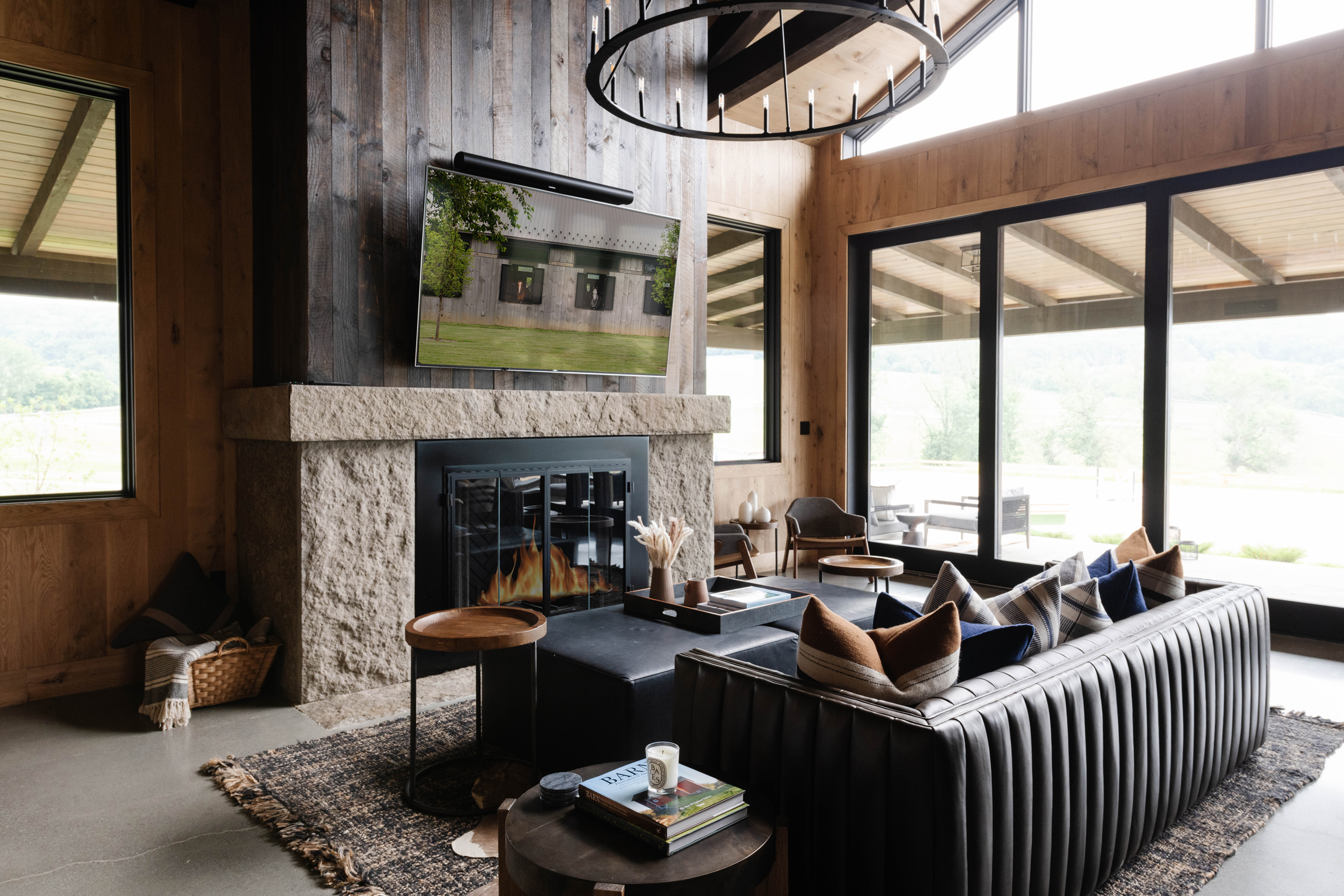 Raw materials came to life in the walls of this farmhouse-style for members of this exclusive community only. A sleek, modern color palette, ripe with contrast, set the stage for a welcoming (and well-stocked) bar, inviting seating area, saddle display, and an enticing outdoor area perfect for taking in the equestrian games.